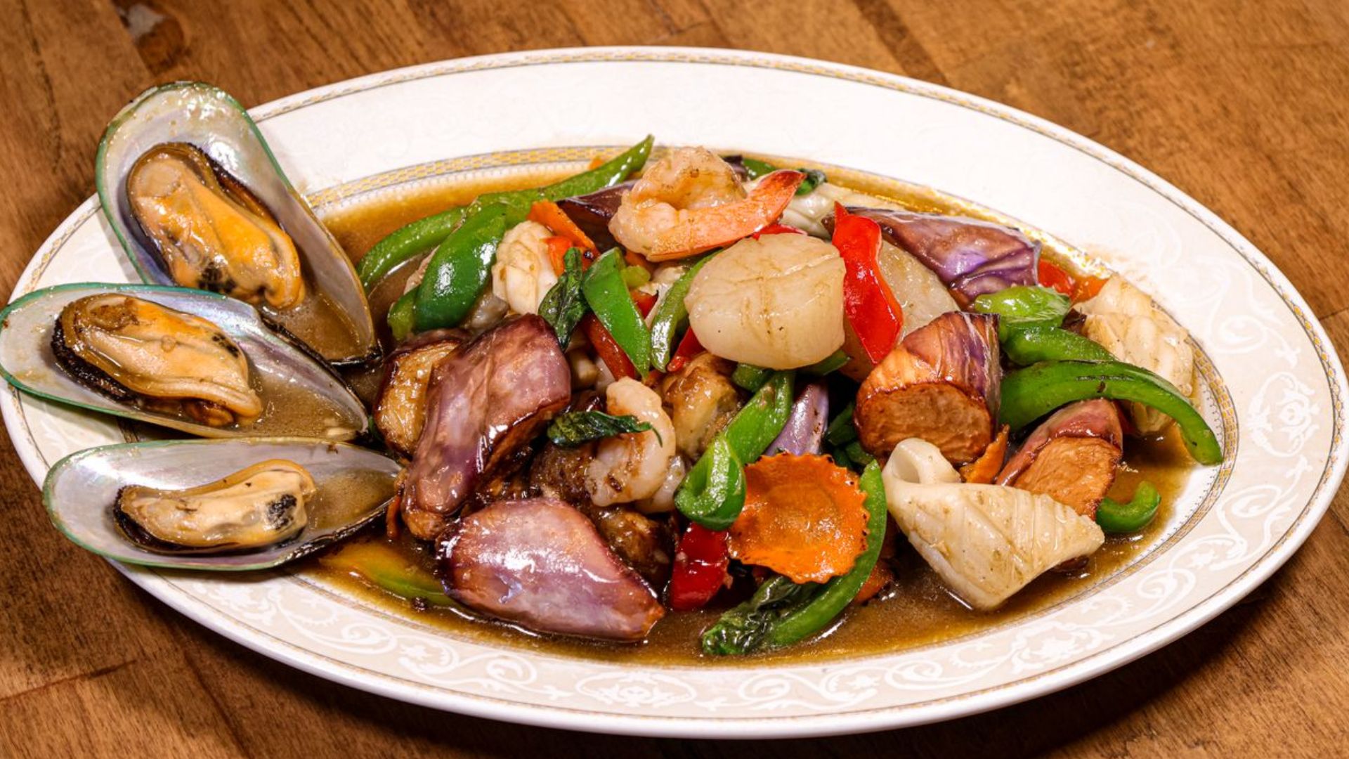Mixed vegetables stir-fried with your choice of meat in a Special Thai sauce.